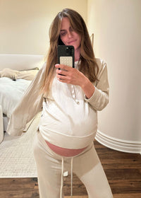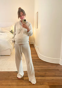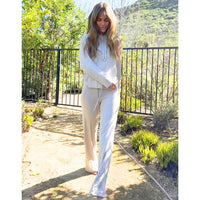 Get ready to elevate your everyday style with LAUREN KENNEDY women's set that combines comfort and fashion. Made from the softest knit modal, this set is available in neutral cookie cream colour. This is the must-have set for moms on the go. Great for pick ups, drop offs and coffee runs. Also perfect for both lounging and errands, this easy-to-wear sweatsuit is a must-have for the fashion-forward traveler. Don't forget to treat yourself and your little one to these ultra soft matching outfits.
